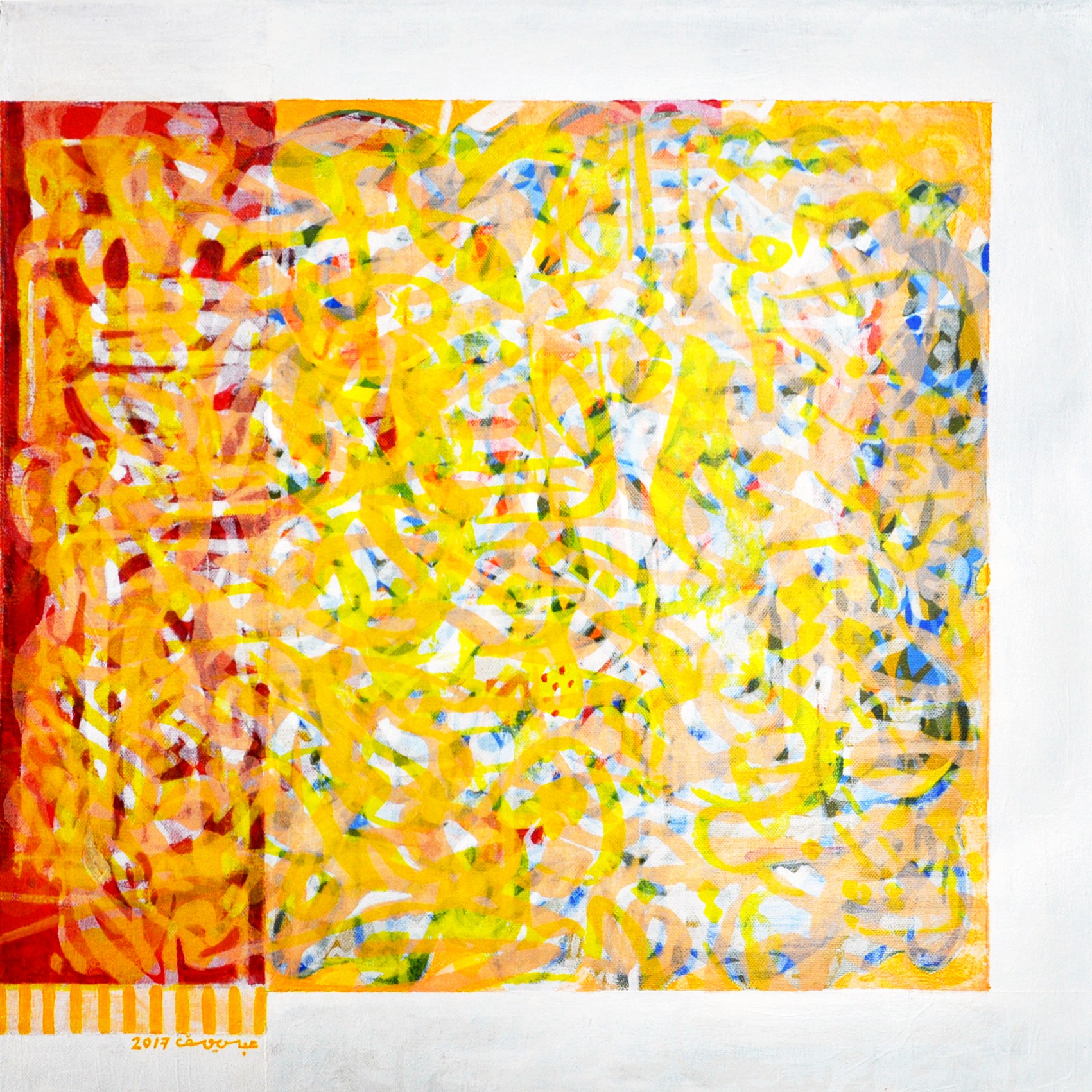 Writer and artist Abbas Yousif’s work is by and large shaped by his interest inliterature, Arabic poetry and Sufi prose. His resulting paintings, collages, books and prints, are visual manifestations and interpretations of the philosophy and mysticism of writers, spiritual thinkers and academics. Each resulting work explores his chosen verse, emphasizing the depth of its message, through rhythmic compositions and often ambiguous, calligraphic marks.
