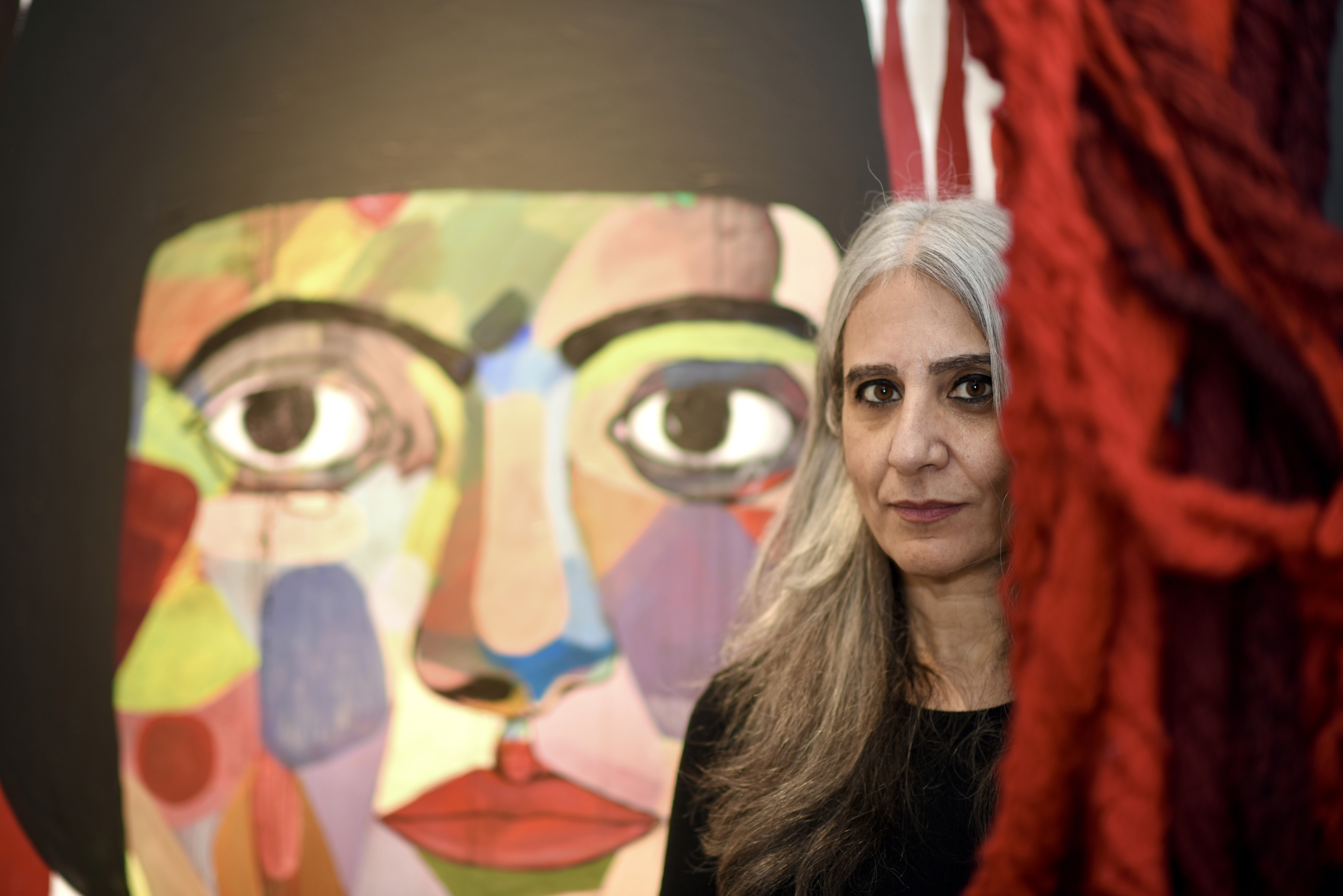 Ghadah Alkandari is a Kuwaiti artist born in Delhi in 1969. In 1992 she received a BA in Mass Communications from the American University in Cairo. But it was a six-week painting course at the School of Visual Arts that shaped her current painting style, which was also influenced early on by both classical painters: Cezanne, Matisse, Schiele, Modigliani and Klimt, and comic books: Mad Magazine, Archie and Asterix. Recently, her work has segued into more abstract forms and shapes, a deconstruction of her usual subjects. Abandoning the familiar forms she was accustomed to has allowed her to immerse herself further into her works, by transporting her own movement and physical tics into her paintings.